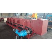 板式給料機(jī)結(jié)構(gòu)組成:底座、機(jī)架、機(jī)頭、驅(qū)動(dòng)輪、機(jī)尾張緊輪、上下托輥、鏈帶、槽板、受料槽、卸料槽和封閉欄板組成。