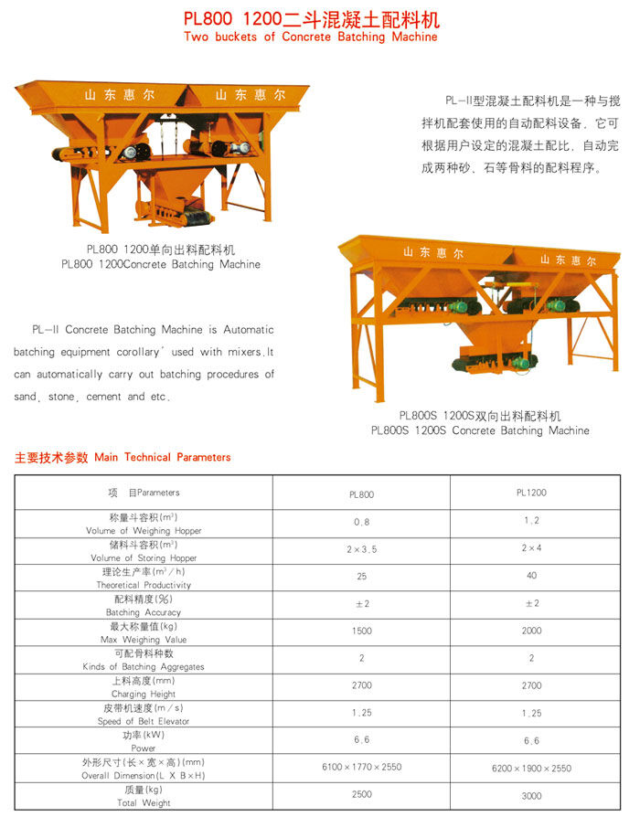 歸屬行業(yè):PL800二斗混凝土配料機(jī)