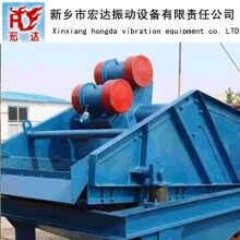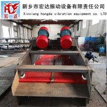 脫水篩主要技術(shù)特點(diǎn):(1)篩面成折線形,從人料端到出料端角度逐漸減小篩面根據(jù)角度不同共分五段,每兩排篩板為一個(gè)斜面,從入料端至出料端依次相差5.5°,分別為25°、19.5°、14°、8.5°和3°。在入料端傾角大,物料具有較大的拋擲強(qiáng)度和運(yùn)動(dòng)速度,使物料快速分層,中部對(duì)于已分好層的物料再給以和普通篩分機(jī)相同的加速度,使細(xì)粒物料有充分的機(jī)會(huì)透篩,單位篩面透篩能力提高,使篩上物料層厚度從人料端到排料端基本保持不變。 (2)篩板采用聚氨酯和不銹鋼篩條制作,篩板四周用聚氨酯材料,具有耐磨性能好,噪聲低的特點(diǎn)。中間為不銹鋼篩條,與其他材質(zhì)相比具有強(qiáng)度大、磨以及開孔率高的特點(diǎn)。 (3)篩板安裝結(jié)構(gòu)簡單.篩板與篩板之間沒有螺栓連接,靠聚氨酯材料的塑性緊密配合,篩板不易松動(dòng),減少了事故發(fā)生。篩板軌座與支撐梁之間有保護(hù)蓋條,使軌座下螺栓不會(huì)受煤水的腐蝕和磨損 (4)激振器采用整體的箱式激振器.激振器安裝在篩箱上部的大梁上,箱體內(nèi)裝有主動(dòng)軸和從動(dòng)軸,軸上各有一對(duì)重量相同的偏心塊,通過齒輪兩根軸做同步反向回轉(zhuǎn),使偏心塊回轉(zhuǎn),產(chǎn)生離心力形成激振力。偏心塊成對(duì)的布置在激振器箱體外面,使箱內(nèi)結(jié)構(gòu)緊湊,齒輪對(duì)安裝在箱體內(nèi),潤滑可靠,傳動(dòng)平穩(wěn)。 (5)傳動(dòng)系統(tǒng)簡單:傳動(dòng)系統(tǒng)由一臺(tái)45 kw電動(dòng)機(jī),通過三條V帶傳動(dòng)給萬向連接軸,萬向連接軸由連接輪與激振器接,從而消除因振動(dòng)篩振動(dòng)造成的連接長度及軸線角度的變化(6)篩面兩側(cè)的保護(hù)蓋條緊固結(jié)構(gòu)簡單粗聯(lián)結(jié)牢固篩面兩側(cè)保護(hù)蓋條兩個(gè)接觸面為斜面,接觸面積大,上面為壓板不易松動(dòng)。