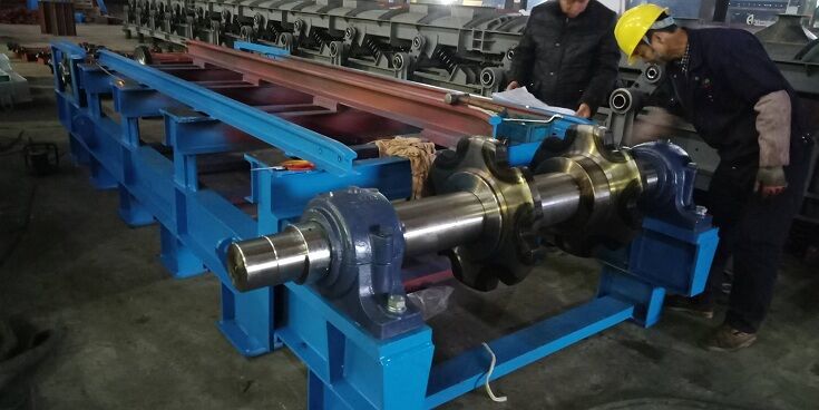 導(dǎo)料板的長度通常由進料方式確定,如果板式給料機是放在料倉下面,那么在料倉下面就不需要設(shè)計導(dǎo)料板,料倉往外到驅(qū)動軸這一段就要設(shè)計導(dǎo)料板。如果是通過裝載機往板式給料機供料,則板式給料機全段都要設(shè)計導(dǎo)料板。
