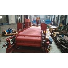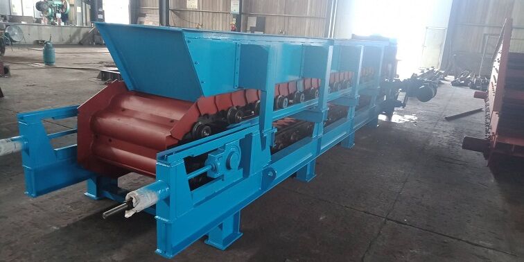 該裝置的安裝要點(diǎn)在于對鋼絲繩仲人下料口深度和彈簧拉力的調(diào)整,要以不斷料不溢料為準(zhǔn)。鋼圓盤離給料機(jī)過近,稍微有點(diǎn)料層厚度板喂機(jī)就會(huì)停止,影響正常下料;如果過高又起不到防溢料的作用。彈簧拉力過大過小也是如此。因此,調(diào)節(jié)時(shí)要反復(fù)耐心地進(jìn)行,相互配合,才能達(dá)到預(yù)期效果。