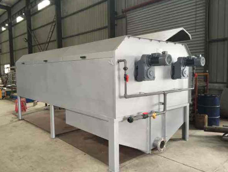 由平臺上的減速機帶動主軸轉(zhuǎn)動,主軸帶動刮臂下的刮泥板將污泥刮集到中心泥斗,由排泥管排出,小刮刀轉(zhuǎn)動防止污泥板結(jié),便于排出。