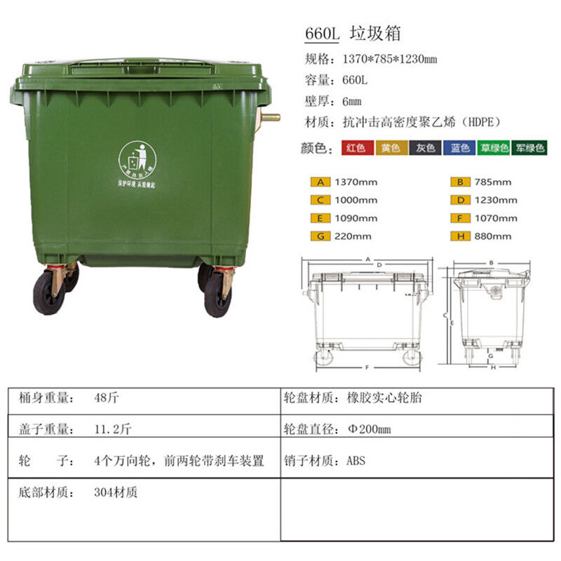 歸屬行業(yè):660升環(huán)衛(wèi)垃圾桶廠家,加厚新料戶外垃圾車價(jià)格,660升戶外垃圾桶批發(fā)