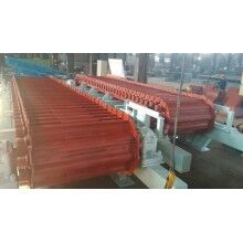 確定要改動(dòng)的部件,利用大修時(shí)間,將頭輪和尾輪拆除,對(duì)軸進(jìn)行加工,重新安裝;槽板拆除后,對(duì)與輸送鏈條配合的定位孔進(jìn)行加工;行走輪固定座需焊接至槽板上的,在線下加工完成后焊至槽板上;支重系統(tǒng)等可在鏈輪加工期間完成,整個(gè)改造過(guò)程較為緊湊。