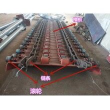 板式給料機(jī)運行部件由牽引鏈條,承載構(gòu)件行走滾輪和輸送槽板等組成。
