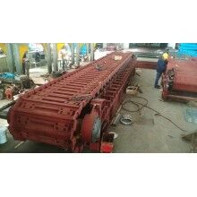 石料生產(chǎn)線日需石灰石6000t,需要臺時輸送產(chǎn)量800t,中控給定板式喂料機頻率35Hz,臺時產(chǎn)量僅為440---480t/h,離800t/h的設(shè)計產(chǎn)量差得很遠,破碎機每天需要運轉(zhuǎn)14h。為此,對板式喂料機系統(tǒng)進行了分析與改造。