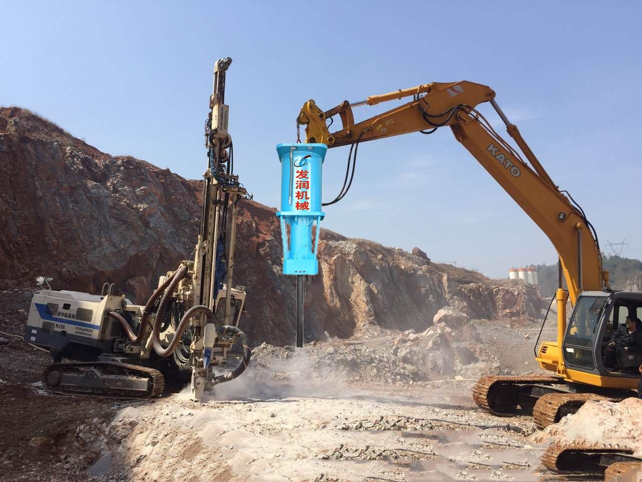 大型破碎巖石設(shè)備替代了爆破和傳統(tǒng)的破碎方法。它在破碎巖石和混凝土?xí)r不會產(chǎn)生壓力波,也沒有振動、噪音和粉塵,在采石場的荒料開采也擁有很大的技術(shù)優(yōu)勢。