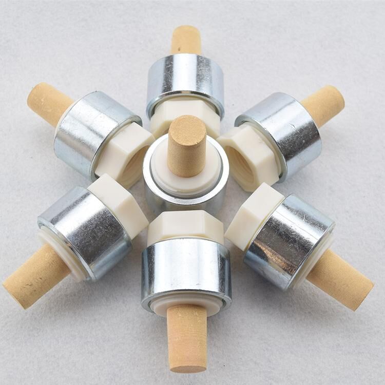 氣嘴是一種安裝方便、使用范圍廣泛的破拱助流設(shè)備,能安裝于料斗、料倉尤其是管道上。氣嘴前部是多孔金屬,外部通入的高壓空氣,經(jīng)過氣嘴后均勻分散在氣嘴周圍,促使粉料流動,達到助流效果。流化效果由氣嘴數(shù)量確定,不同的粉料及容器狀況需要不同數(shù)量的氣嘴。本產(chǎn)品具有安裝維護方便,價格低廉、流化效果明顯等突出優(yōu)點。