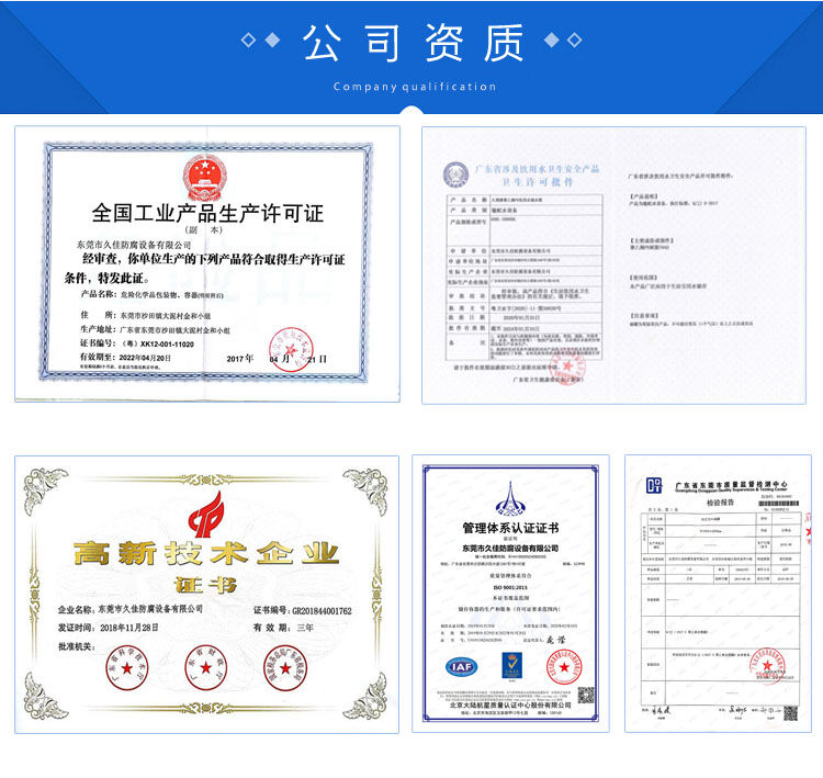 東莞市久佳防腐設(shè)備有限公司是國(guó)內(nèi)前沿的防腐環(huán)保設(shè)備制造商之一,竭誠(chéng)以專(zhuān)業(yè)的防腐技術(shù)為各類(lèi)石化、環(huán)保、釀造、醫(yī)藥、食品等行業(yè)提供防腐儲(chǔ)存運(yùn)輸設(shè)備。公司擁有各類(lèi)先進(jìn)的生產(chǎn)設(shè)備與檢測(cè)儀器。加工工藝成熟,檢測(cè)手段先進(jìn),經(jīng)過(guò)多年不斷創(chuàng)新努力,集生產(chǎn)、銷(xiāo)售各類(lèi)鋼襯塑儲(chǔ)罐、鋼襯塑反應(yīng)釜、防腐儲(chǔ)罐、全塑儲(chǔ)罐、PE儲(chǔ)罐、離子交換柱等系列設(shè)備于一體。設(shè)備品質(zhì)得到廣大合作企業(yè)高度好評(píng).設(shè)備技術(shù)合作開(kāi)發(fā)愈加密切。