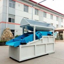 振動(dòng)式砂石分離機(jī)利用振動(dòng)電機(jī)激振作為振動(dòng)源,是物料再篩網(wǎng)上唄拋起,同時(shí)向前直線運(yùn)動(dòng),物料自罐車均勻地進(jìn)入篩分機(jī)的前段,沖洗的同時(shí),通過制定規(guī)格的篩網(wǎng)分出篩上物、篩下物,石子沿振動(dòng)篩方向流入石子儲(chǔ)料池,砂子經(jīng)篩孔漏下,由螺旋輸送機(jī)輸送到砂池。砂石用直線篩采用柔性驅(qū)動(dòng),其偏心塊所產(chǎn)生的激振力、驅(qū)動(dòng)振動(dòng)篩往復(fù)式平行復(fù)擺雙方向運(yùn)動(dòng),使混合料分離,從而達(dá)到對(duì)物料進(jìn)行篩選和分級(jí)的目的。