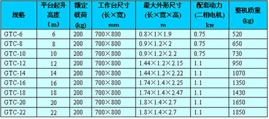 GTC套缸式液壓升降平臺技術(shù)參數(shù):