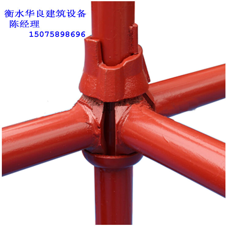 碗扣腳手架獨(dú)特的結(jié)點(diǎn)設(shè)計(jì),雖仍應(yīng)歸為鉸接,但卻能夠承受相對更大的荷載,再加上其立桿上的上碗和橫桿上的插片均為鍛鋼的工藝,使這款碗扣腳手架系統(tǒng),在國外被廣泛地應(yīng)用于化工廠、煉油廠、油田以及大型船艦維修等荷載相對較高的領(lǐng)域。考慮到系統(tǒng)的穩(wěn)定性,安裝斜桿是必須的。為了補(bǔ)足這個弱項(xiàng),該系統(tǒng)特意設(shè)計(jì)了另外一類斜桿,在斜桿的兩頭,均用高強(qiáng)度螺栓,各固定半個旋轉(zhuǎn)扣件,扣件亦采用鍛鋼工藝。這樣,盡管斜桿無法直接在碗扣的結(jié)點(diǎn)扣接,但可以用扣件扣接在橫桿或立桿的適當(dāng)位置上,也大大地改善了系統(tǒng)的穩(wěn)定性。