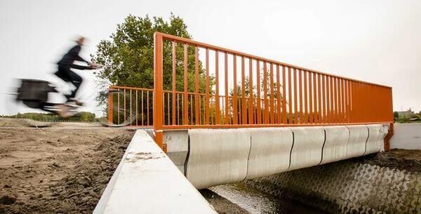 這座8米長(zhǎng)的橋梁橫跨一條水溝,以兩條道路連結(jié)起來(lái),并在與BAM Infra建設(shè)公司合作之下,測(cè)試重達(dá)2噸的橋梁承載力。設(shè)計(jì)師表示,這座橋梁雖是替單車打造,卻可承載多達(dá)40輛卡車的重量。