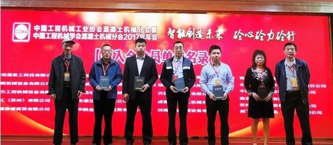 中國(guó)工程機(jī)械工業(yè)協(xié)會(huì)混凝土機(jī)械分盛春芳顧問、魏覺顧問為新會(huì)員頒發(fā)證書
