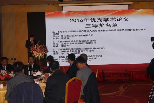 晚宴進(jìn)行過(guò)程中,中國(guó)工程機(jī)械工業(yè)協(xié)會(huì)混凝土機(jī)械分會(huì)符忠軒會(huì)長(zhǎng)上臺(tái)宣讀了《關(guān)于2016年學(xué)術(shù)論文評(píng)獎(jiǎng)結(jié)果的通報(bào)》,并進(jìn)行了優(yōu)秀論文頒獎(jiǎng)活動(dòng)。